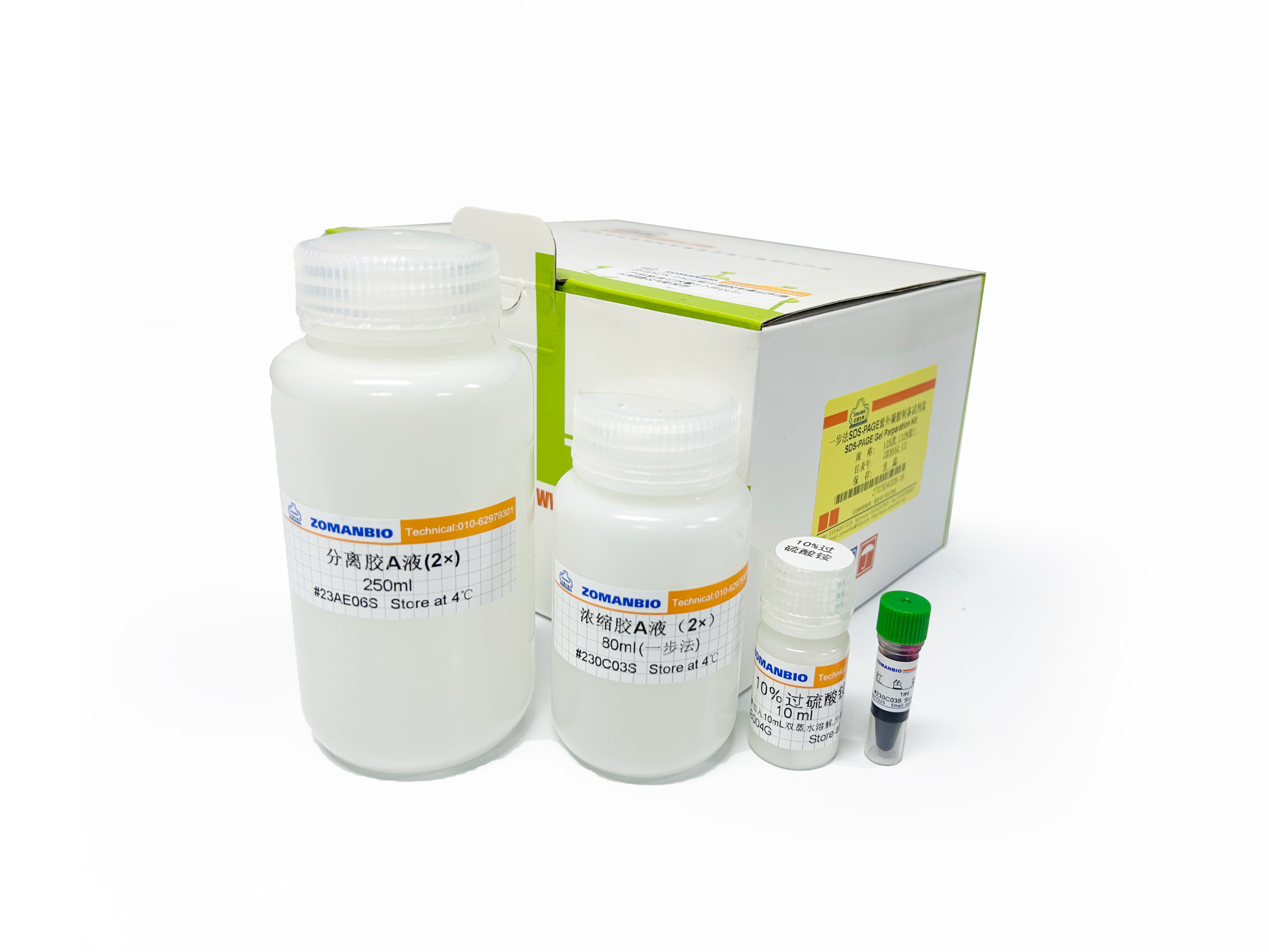 本產(chǎn)品為可紫外照射凝膠快速顯示蛋白條帶的一步法PAGE凝膠的預(yù)混配方。產(chǎn)品只需要1:1添加后,再加入催化劑---過硫酸銨,且支持一步灌膠,無需等待分離膠凝固再灌濃縮膠,此濃縮膠可以添加染料,使上樣孔更清晰,方便點(diǎn)樣。制備的凝膠與傳統(tǒng)Tris-甘氨酸電泳液完美兼容,且電泳方法一致。