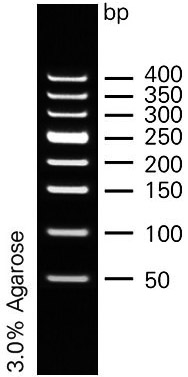 產(chǎn)品名稱:50bp DNA Ladder分子量標(biāo)準(zhǔn)(條帶50.100.150.200.250.300.350.400)(ZM201)
