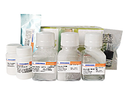 本試劑盒用于EGY48-pLacZi酵母雜交系統(tǒng)中的LacZ報(bào)告基因的檢測。當(dāng)有互作發(fā)生,LacZ報(bào)告基因表達(dá),生成β-半乳糖苷酶,將X-Gal切割成半乳糖和深藍(lán)色的底物5-溴-4氯靛藍(lán)。