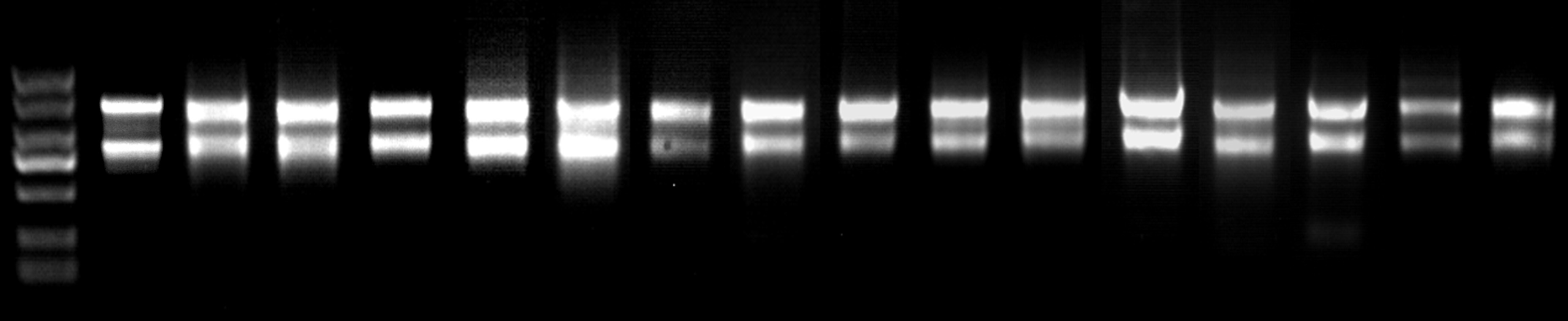 RNA得率 | 14ug | 20ug | 25ug | 25ug | 22ug | 50ug | 12ug | 23ug | 24ug | 30ug | 30ug | 25ug | 11ug | 15ug | 5ug | 5ug |