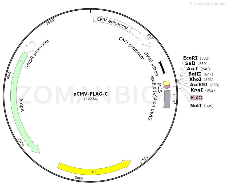 pCMV-FLAG-C是一個(gè)哺乳細(xì)胞過(guò)表達(dá)質(zhì)粒,C端有FLAG標(biāo)簽。
